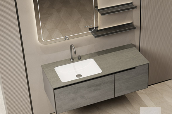 柜體材質(zhì):高級灰免漆板+朗生水磨石面板