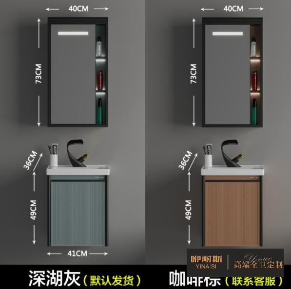 9、顏色多變,造型豐富,鋁浴室柜表面采用環(huán)保仿真木紋皮膜,更加美觀。